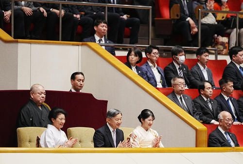 天皇陛下が観戦される「天覧相撲」が行われ、天皇皇后両陛下と内親王殿下の愛子さまが、ご来館なさった。午後5時1分に、場内アナウンス。「天皇皇后両陛下、愛子内親王殿下、ご入場になります」。黒紋付き、羽織はかまの八角理事長に続いて、両陛下と愛子さまは貴賓席に姿をお見せになると、場内が沸いた。