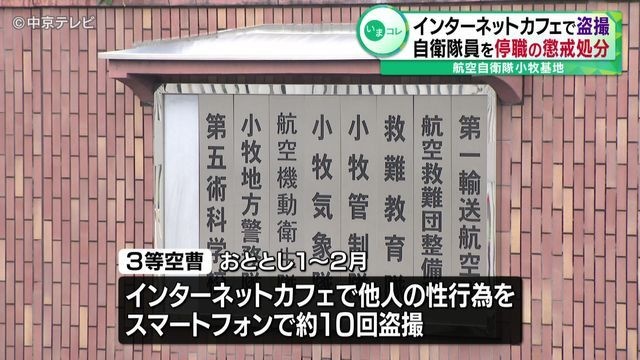 【愛知】インターネットカフェで他人の性行為を盗撮 自衛隊員を停職の懲戒処分 航空自衛隊小牧基地